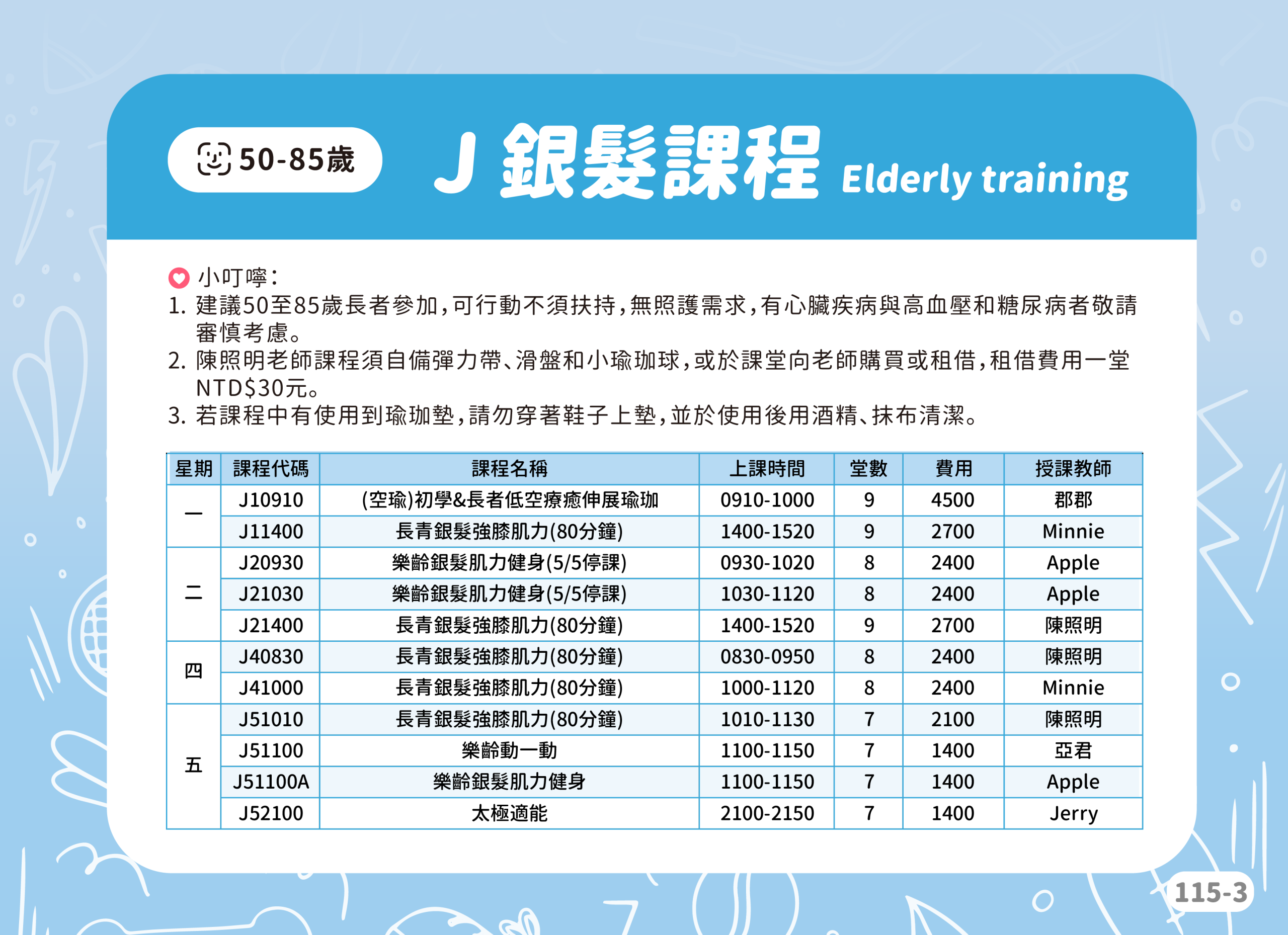 【課程】B 徒手肌力 / G 專業武術 / J 銀髮